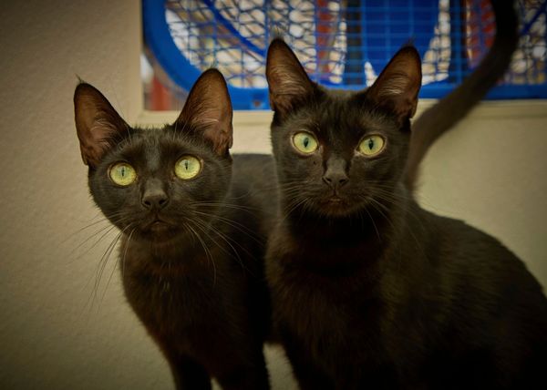 Thelma and Louise are silky onyx sisters with love to give for miles. They are also simply gorgeous. These gals gave birth just a week apart. They are such good sisters and took care of each other's litter. This duo is incredibly sweet and fun-loving. These two young ladies are social butterflies who love to be petted and may just even hitch a shoulder ride. And yes, they are inseparable. Two times the beauty, charm and fun!